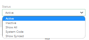 - Show All – which will show all active and inactive codes.