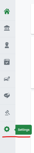 2. Selecting the Settings icon from the navigational bar on the left side of screen.