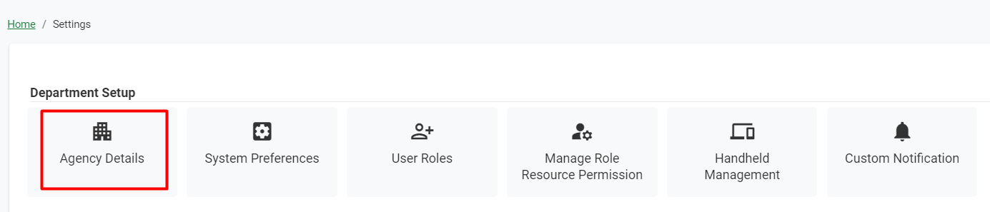 Figure 18 Settings>>Agency Details