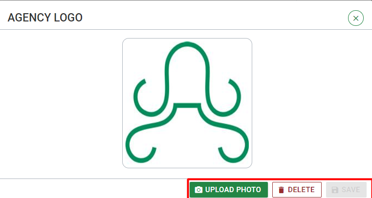 After the user clicks on the Agency Logo, a dialog will appear, providing the option to change the logo. By selecting “Upload Photo”