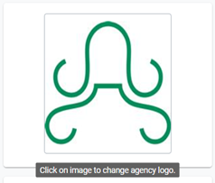 To change Agency Logo, hover on Agency Logo Image on left and click on it. This will allow user to change logo.