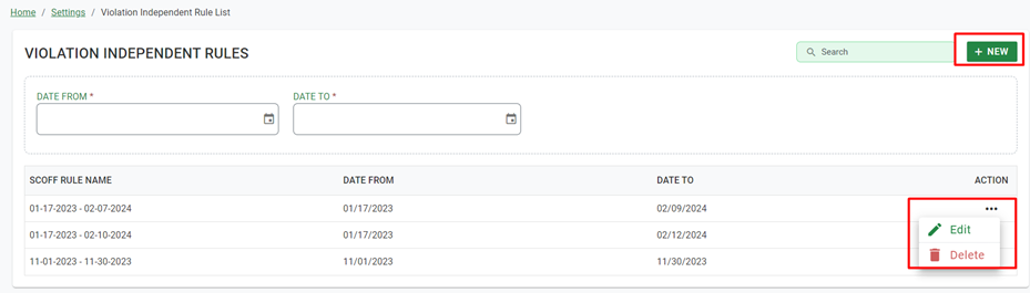 Figure 67 Settings >> Violation Independent Rule