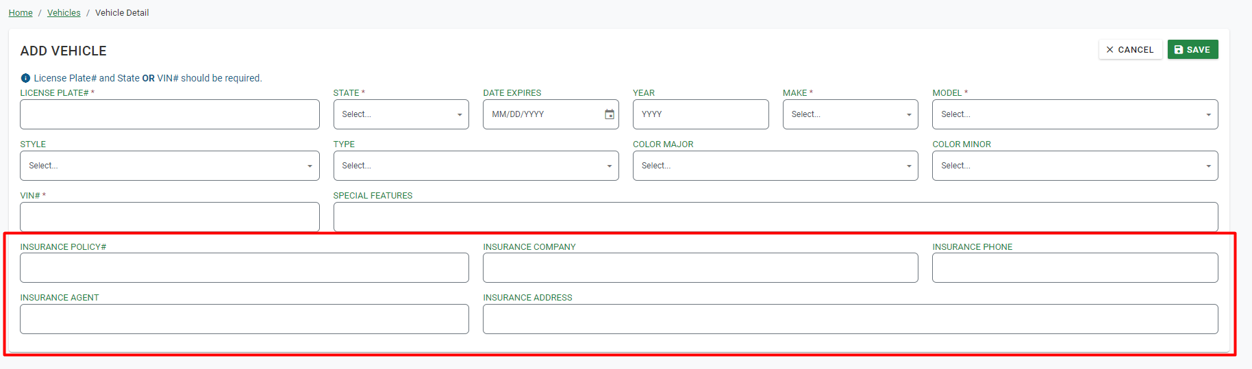 Vehicle other field setup – If Agency enables this settings then, Insurance related field are displayed to users while adding/editing or viewing Vehicles.