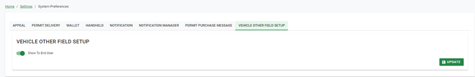Agency-wide settings regarding Appeal Date, Permit Delivery, Wallet, Handheld, Notification, Notification Manager, Permit Purchase Message and Vehicle other field setup can be configured through this section.