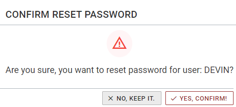 Reset Password – This allows the Admin to reset the user's password. Once selected and confirmed, the user will receive an email to reset their password.