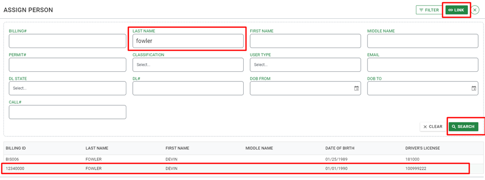 If the Admin is unsure of the person's billing number, they can click the Assign button, which will allow them to search existing records for the desired person.