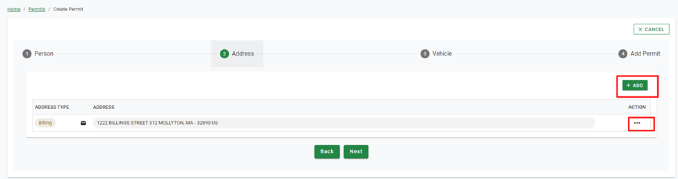 Figure 107 Create Permit >> Step 2 Add Address