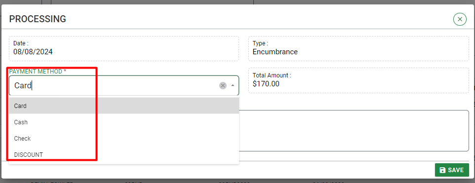 Any citations with pending payment status can be processed by selecting the desired citations and clicking on the Process button. The Admin can then enter the payment details and click Save, which will process the citation in the system.