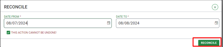 This section is for situations when a department does not anticipate pending charges to be paid. They need to mark the period for which they need to reconcile. This action is irreversible, so the admin should be certain and careful before using this option.