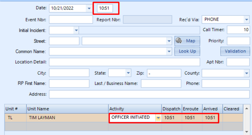 Stamp Times – If allowed for any Officer Activity Code then it will automatically add Dispatch, Enroute, and Arrive Time matching the time when the call was initiated. So, it saves lots of time for the Dispatcher.