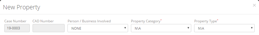 Next select the Category and Type. If the property was recovered from a subject that has been attached to the event, select them from the drop-down menu.