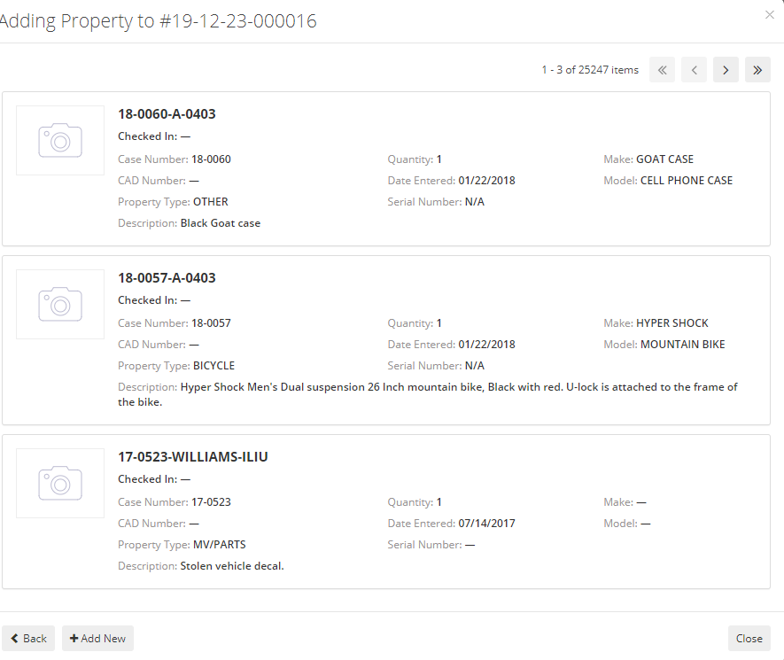 Property Category – Evidence, Lost Property, etc. |