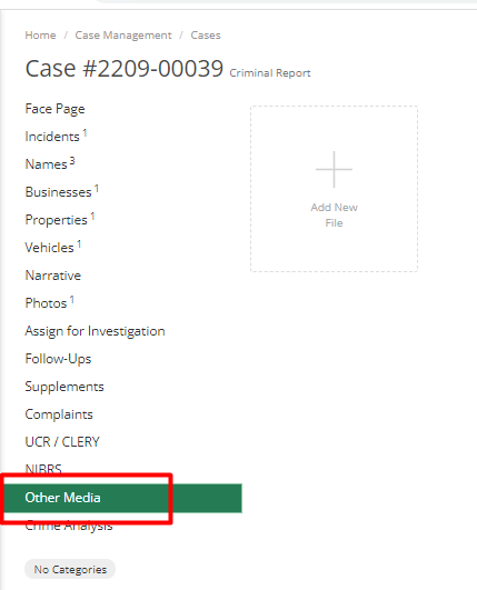 In the Other Media tab, officers can upload any type of File that is not a photo like documents, videos, audio, etc.