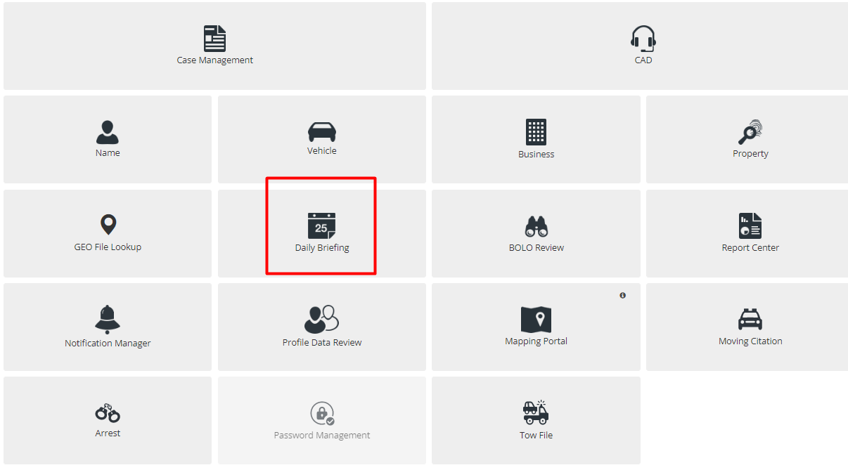 In Daily Briefings, officers can view crime codes for CAD reports and case reports that have been marked for viewing by department admins.