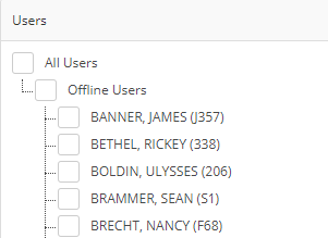 On the left side of the webpage, the Users panel will display all ARMS users as well as their availability status. You can select which users you want to send your messages to by clicking on the checkbox next to their name. If you want to send a message to all online/offline users, or all users, simply check the respective box.