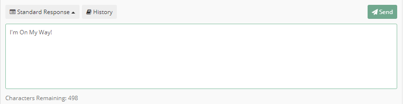 To compose your own messages, select your desired recipients from the User panel and type into the text box found at the bottom of the screen. Hit send. Your message should be sent instantaneously. For quick responses, select a pre-set phrase from the Standard Response options.