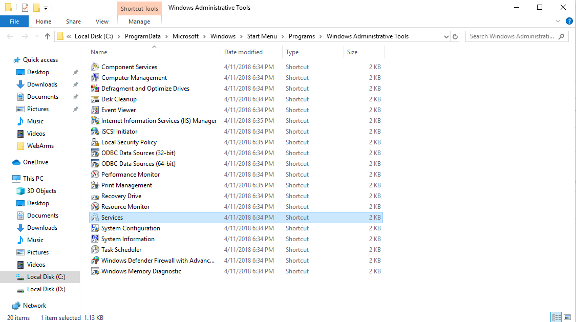Step 1: Go to C:\ProgramData\Microsoft\Windows\Start Menu\Programs\Administrative Tools and select 'Services'.