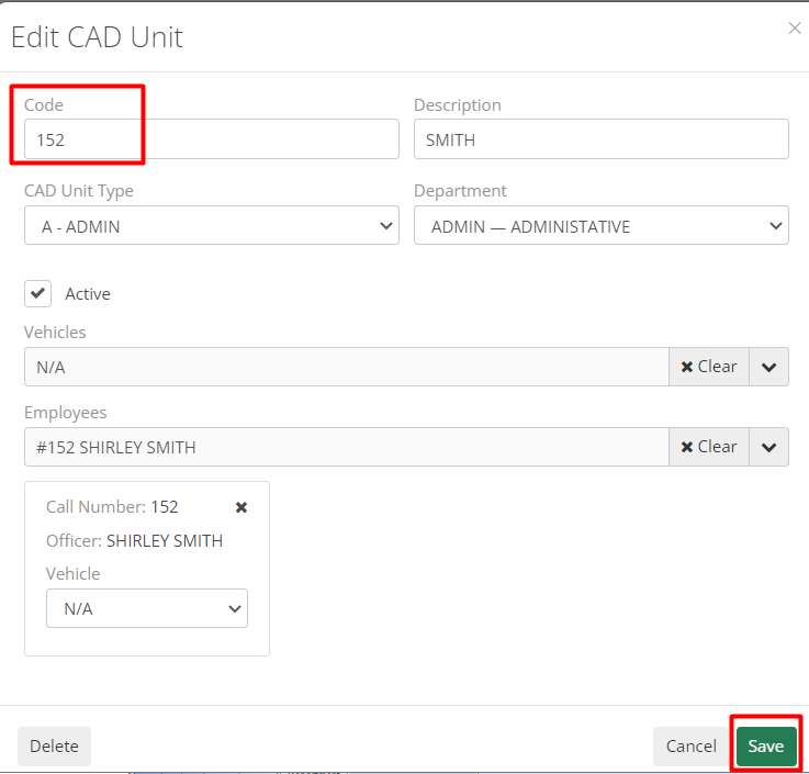 On this screen, select each unit and edit the code to your department’s chosen format.