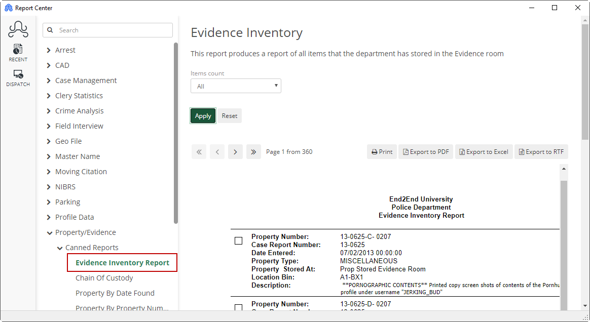 FAQ: How Can I Pull A Report That Shows All Property In My Evidence Room?