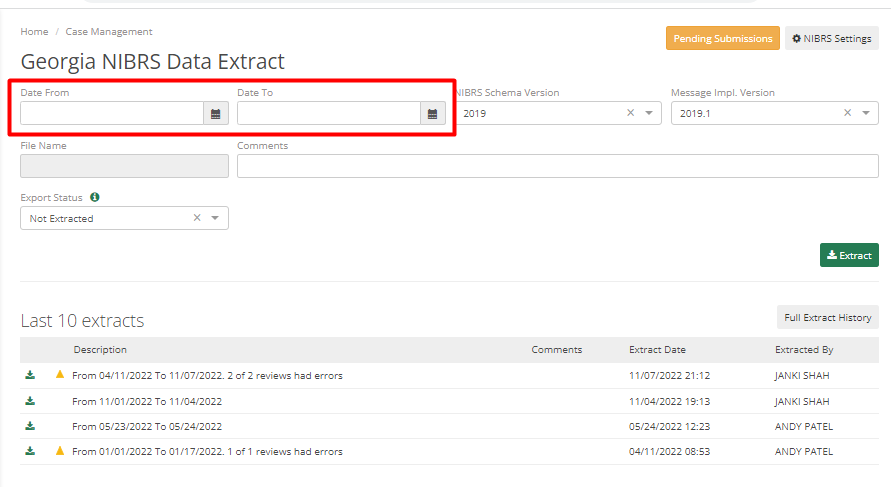3. The "Export Status" should be selected as "Not Extracted” if the user wants to pull data for a month.