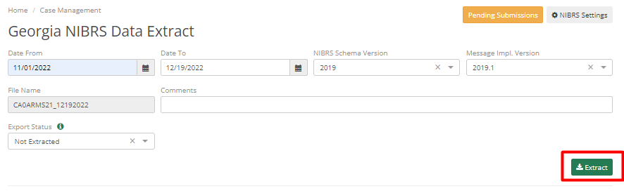 1. Navigate to ARMS Mobile -> Case -> State-specific NIBRS Data Extract