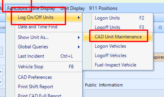 If your department wishes to take advantage of this feature, then a beat must be assigned to each officer by going to CAD > Function > Log in/off Units > CAD Unit Maintenance