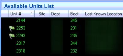The green flag displays for CAD Units that are currently viewing the Open Call List in Mobile CAD. If the flag is not displaying, then the CAD Unit is not actively viewing the Open Call List.