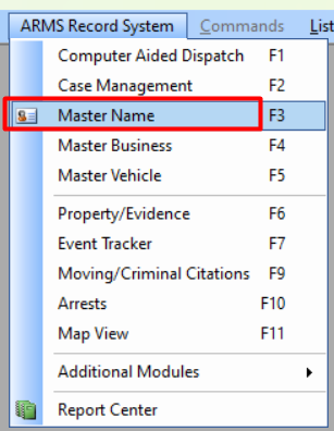 Racial Profiling information can be entered under the Master Name section under Field Interview and Moving Citation.