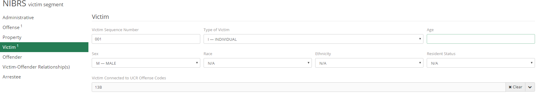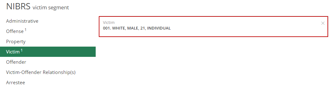 In the Victim segment you are able to view and edit the fields within the segment by clicking on the Victim box. In this segment you will see all of the details associated to this victim.
