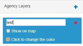 Step 4: In this area of "Agency Layers" users can label what they want the section to be on the map by clicking on the text where "test" is.
