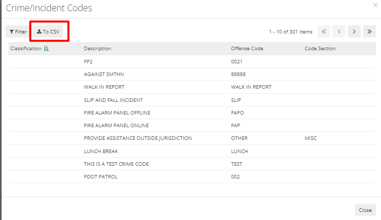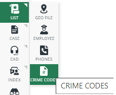 Navigate to to Lists from the Side Menu and then click on Crime Codes