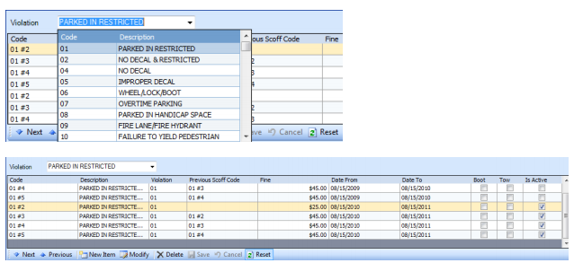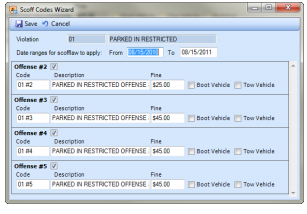 This will show you the list of active and inactive scoff codes for this violation; scroll down the most recent scoff codes for this violation and select Reset. This will bring up the Scoff Codes Wizard that you used to create the scoff codes in the first place. You will need to give it a new date range for which to apply, and you can make any further changes such as the number of scoffs, fines, and actions to be taken.