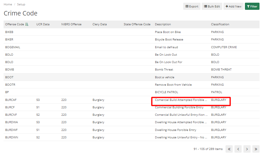 -Once click on the desired crime code, it will show up on an edit screen. UCR Data