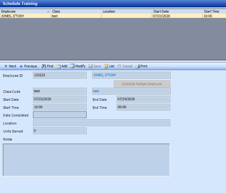 'Schedule Training' is where you would assign an officer to the class code created in 'Training Classes'. You would also schedule the training in this section.