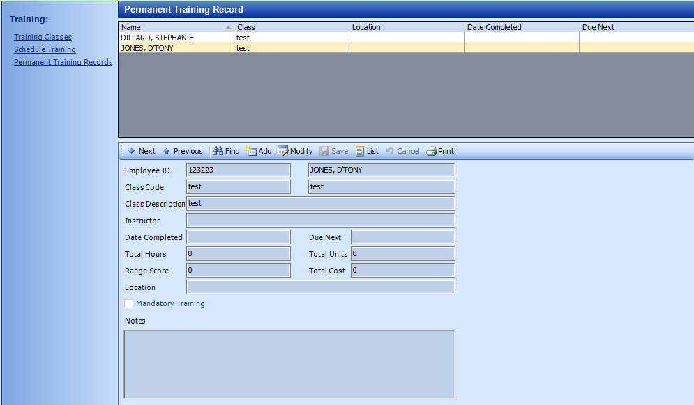 'Permanent Training Records' is where the scheduled training courses are tracked and kept so that users can go back and reference them when needed.