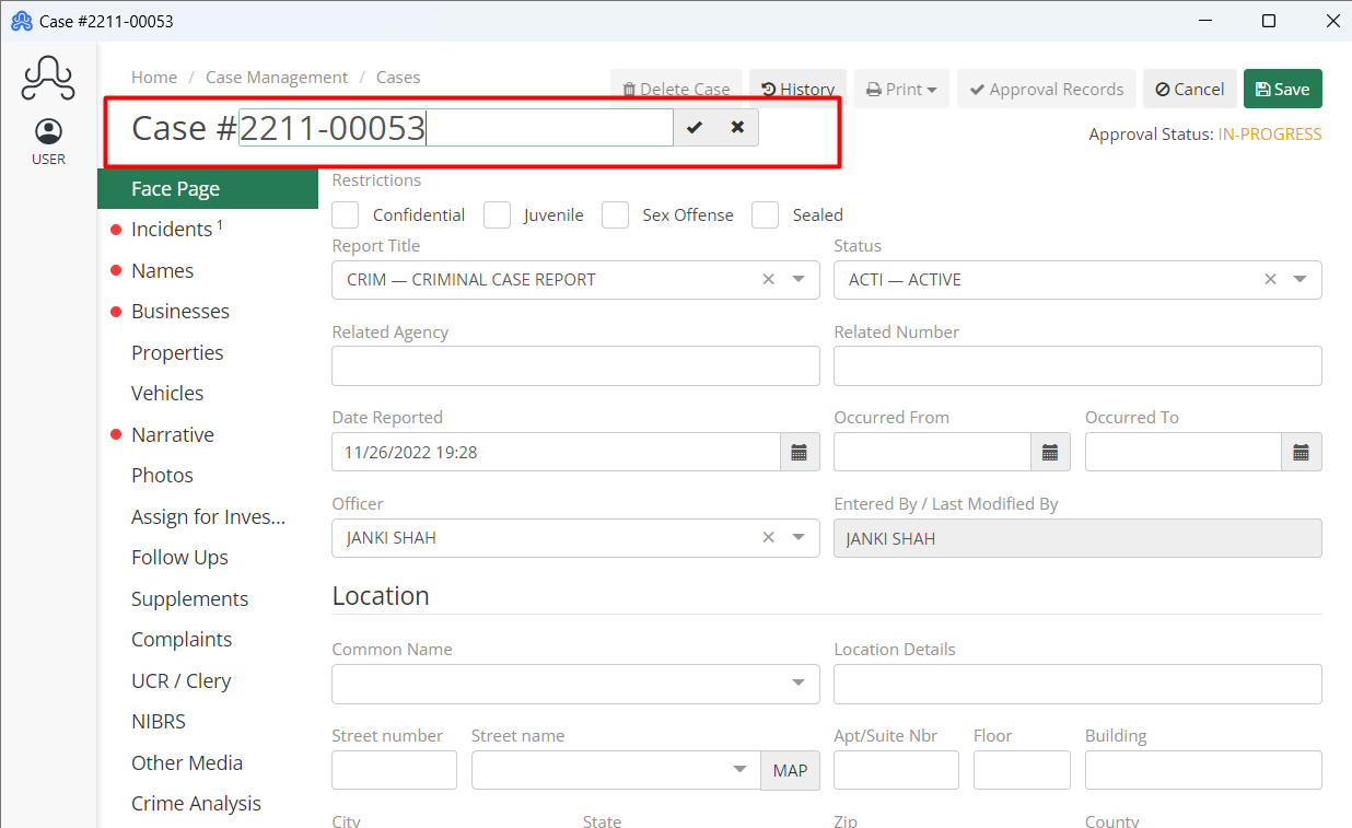 *Be aware that clicking Add and then Save before typing in a new case number will use the next available ARMS case number in the system.