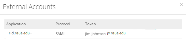 - The user's access profile has an external account attached to it with their SSO token (usually their organizational email), as shown below: