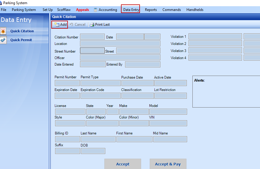 To add the new citation, click on Data Entry -> Quick Citation. Be sure to key in the information the exact same way.