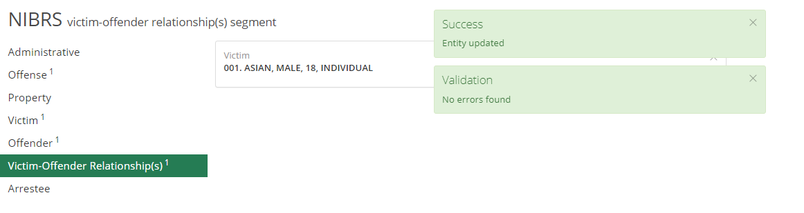 Once this Victim-Offender Relationship has been created, click 'Validate All' to see if the error still persists.