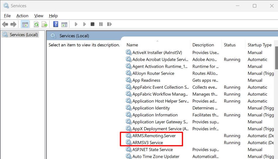 This service is responsible for ensuring the system runs properly and is available for use. The ARMS V3 service is responsible for ensuring CAD is available for use. They can be found on the server under the Control Panel>Administrative Tools>Services.
