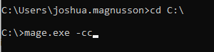 Step 5. Type cd C:\ then run 'Mage.exe -cc'