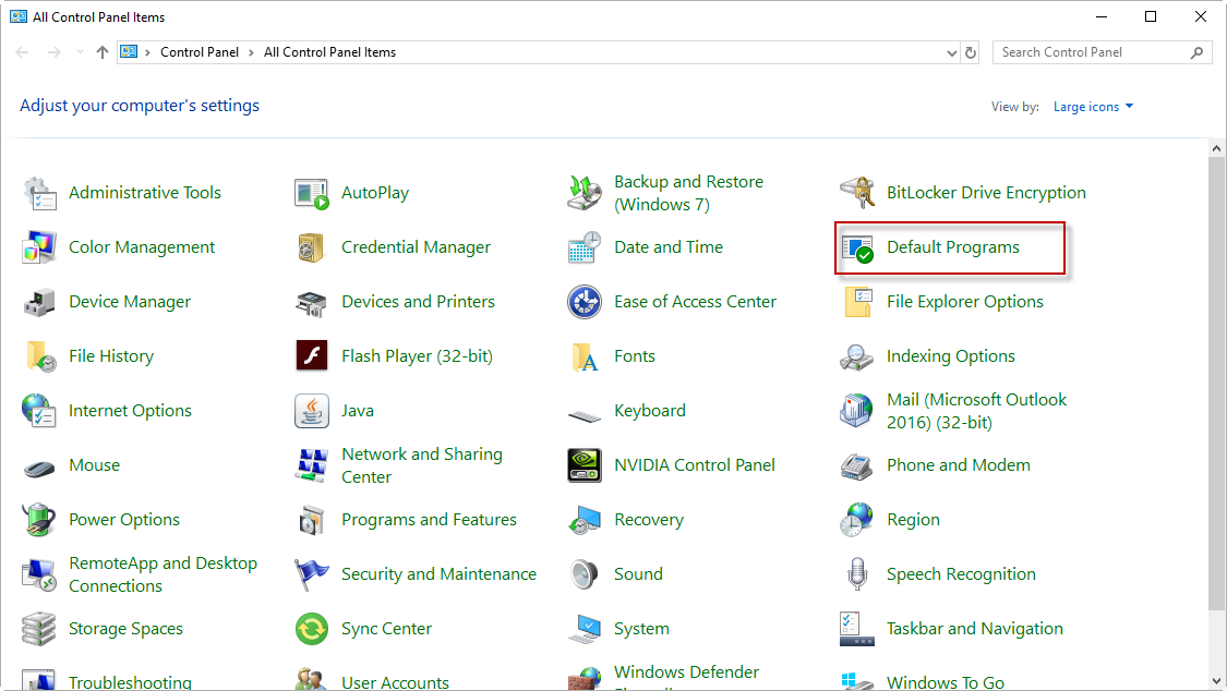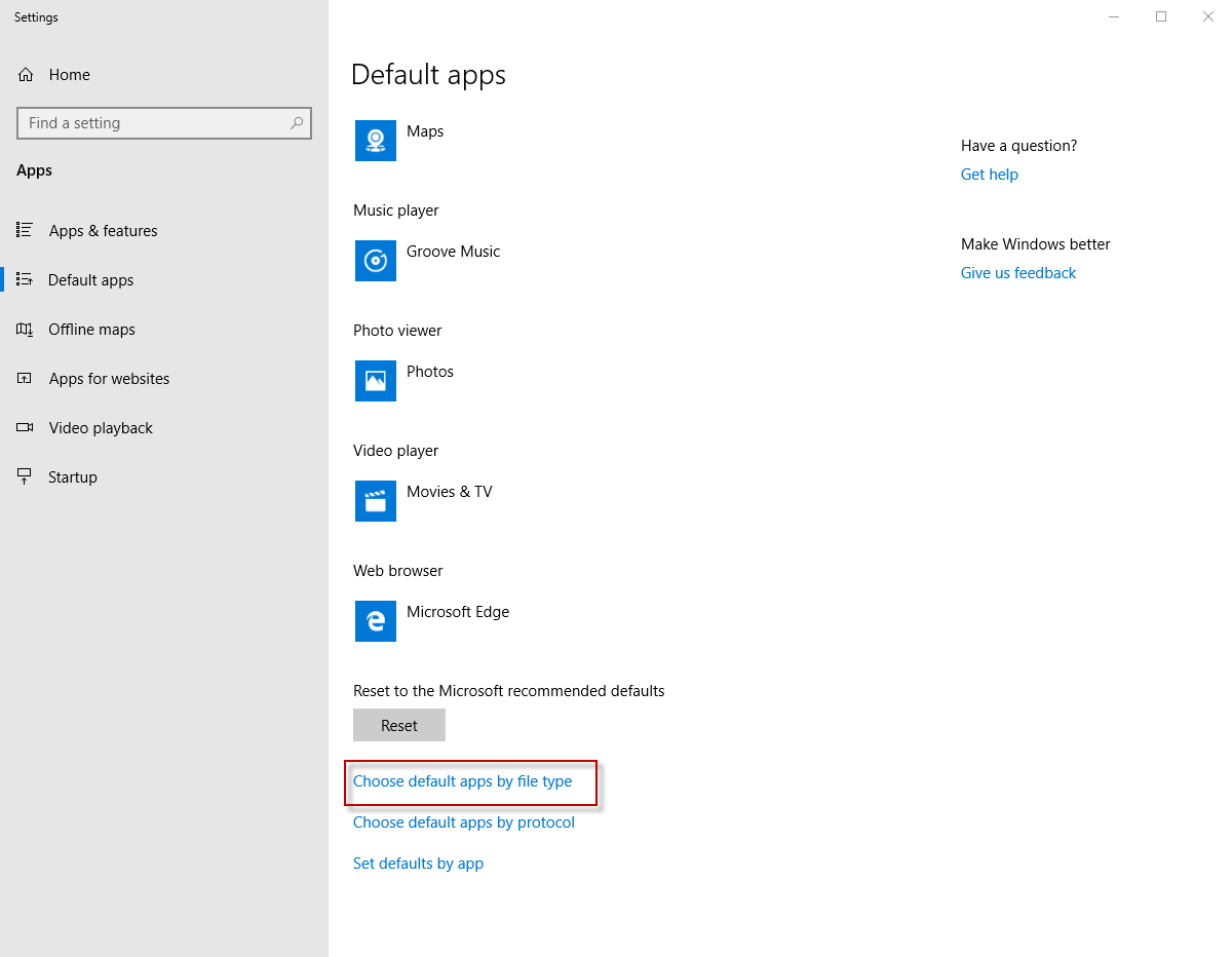 Note: If you are on Windows 10 you can also go to Settings>>Apps>>Default Apps>>Choose Default apps by file type
