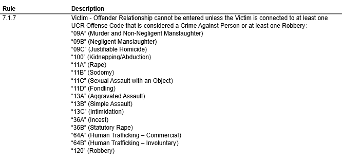 Victim - Offender Relationship cannot be entered unless the Victim is connected to at least one UCR Offense Code that is considered a Crime Against Person or at least one Robbery: