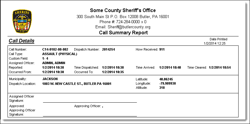 - The report’s previous “Dispatch Location Information” section has been integrated into the “Call Details” section of the “Call Summary Report”.