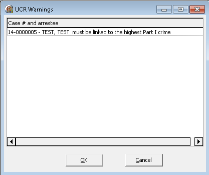 - The following message occurs when an arrestee on the case is not associated with the highest UCR ranked offense.