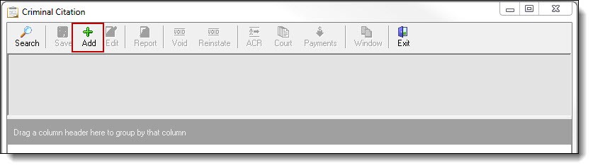 1. Click the “Add” button from the Criminal Cite window to start a new citation.