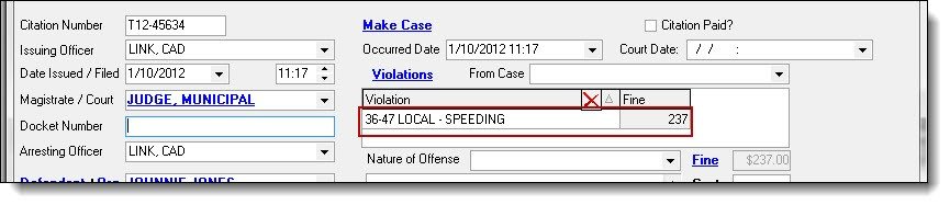 3. The crime will display on the citation.