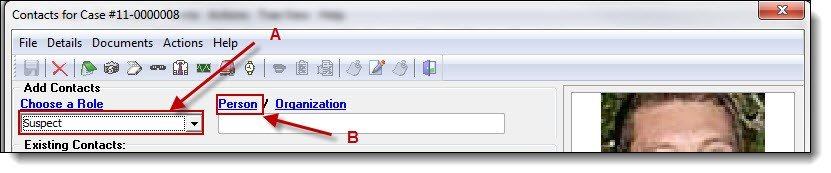 !Did You Know?- The crime association drop down list is labeled according to the role that was selected for the contact. It can display “Suspected of”, “Victim of”, or “Arrested for”.