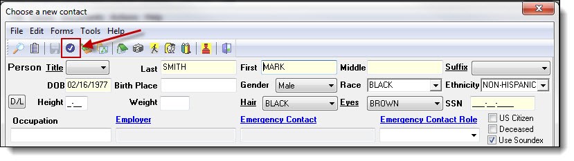 6. Once a person record has been created or chosen, click the “Choose” button at the top of the Person Management window.