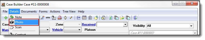 1. Click on the Details drop down list, and select “Photo” to open the Photos window.